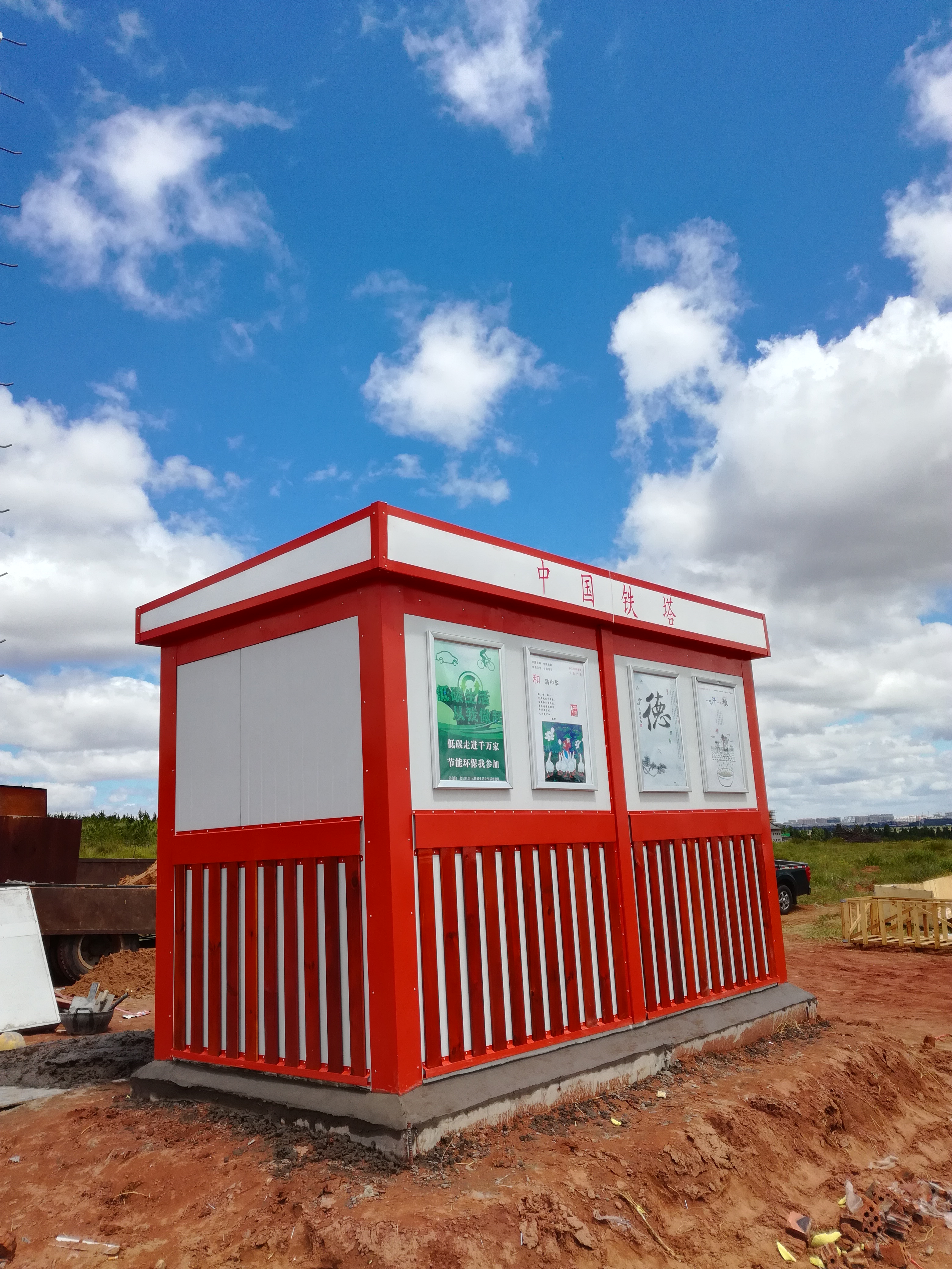 Decorative shelter, beautification on the basis of ordinary movable house, such as additional batten, ceramic tile, glazed tile and other d...