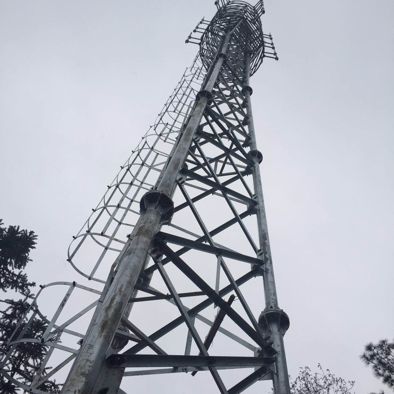 3-tube tower, truss structure communication tower, using Q345B high-quality steel pipe as tower material, small coefficient of wind force, strong wind resistance, flexible structure is not easy to collapse; small footprint, transportation & installation in full manual mode, engineering and maintenance at low cost. Tower body consists of tower column, rail, diagonal, antenna bracket, lightning rod and other devices. Each platform can support 6 antennas, 6-layer platform at most.